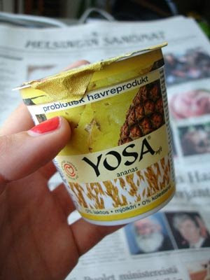 Yosa on mainio tuote meille maito-ongelmaisille ja muillekin! Se on kaurapohjainen ”jogurtti” joka toimii hyvin sellaisenaan tai vaikka hillon korvikkeena puuron kanssa. Yosia on eri makuisia, lempparini luomu-Yosien lisäksi on banaani-mansikka, jossa ei ole lisättyä sokeria. Yosaa saa toki myös isommissa purkeissa, jotka tulevat pikkupikareita halvemmaksi. Näiden tuotteiden kohdalla on sanottava, että lempparikauppani Ruohonjuuri on kyllä kallis. Kandee ostaa lähikaupasta!