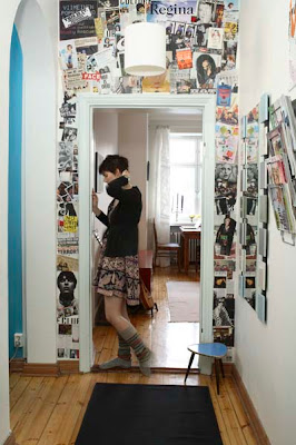 Yläpuolen kollaasi-seinä on tosi helppo tehdä itse. Olen aina tehnyt kollaaseja vihkojen kansiin, kaverien synttärikortteihin, seinille jne. Oma eteinen syntyi parissa päivässä tapettiliisterin voimin. Kätsyintä on, että päälle voi liimata uusia kuvia kun vanhat alkavat tylsistyttää!