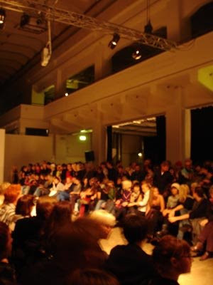 Porkkanamafia elää ja voi hyvin ja siksi uskaltauduimmekin häippäsemään jo puoliysiltä Kaapelitehtaalle Daniel Palillon muotinäytökseen. En löytänyt vielä netistä videokuvaa näytöksestä ja omani on niin epäselvää, että kuvafiilistely jää nyt toteuttamatta, mutta todettakoon lyhyesti, että pidän kyllä Palillon oivalluksista. Hänen vaatteissaan on paljon sellaista, jota voi Liisa Jokisen saumurirallin henkeen hieman, no kopioida ja tehdä itse. Paljon ideoita tuunaamiseen ja pimppaamiseen. Itse vaatteiden lisäksi oli tietenkin hauskaa nähdää Helsingin muotikermaa, joka aina saa minut hilpeälle tuulelle. Pukeutuminen on niin suuri ilo elämässä! Ja onneksi sitä voi tehdä ekologisesti –  jonka myötä toteankin, että häippäsenpä tästä kirpparille…
