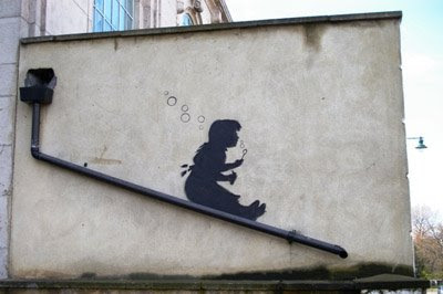 Banksya on hehkutettu Kempparissa ennenkin ja teen sen taas. Herra Banksy jos joku, osaa tehdä ankeasta arjesta paljon kivemman pimppaamalla. Missä on Helsingin ja Suomen oma Banksy? Spray-pullo käteen vaan ja kaupungille. Ja sitten poliiseja pakoon.