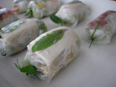 Maistoin lauantaina ensimmäistä kertaa vietnamilaisia rullia. Tuoreet vihannekset, lasinuudelit, tofu ja merenelävät eivät ehkä koskaan ole näyttäneet kauniimmalta. Katsokaa mitä ruokataidetta!