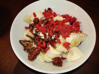 Osa teistä on valitellut, ettei puuro pidä nälkää. Olen eri mieltä, mutta siihen on syy: pimppaan puuroani reilusti. En ole koskaan sen kummemmin mittaillut, paljonko – määrällisesti – heitän sekaan muuta kuin puurohiutaleita. Tänään mittasin ja näköjään puurolautasella on puolet puuroa ja puolet muuta. Se puolet jotain muuta on yleensä puolikas banaani ja rusinaa sekä kaksi ruokalusikallista marjoja ja mahdollisesti vielä goji-marjoja ja hunajaa.