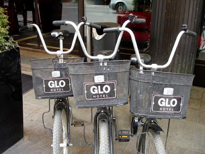 Bongasin taannoin Tampereella Vihreiden mainosfillareita, tällaisilta näyttävät puolestaan hotelli Glon omat brändipyörät.