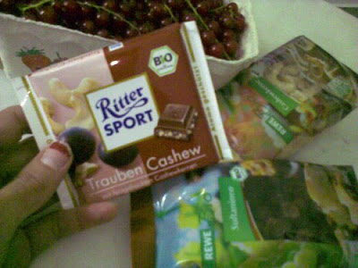 Pahoittelen surkeaa kuvanlaatua, mutta saanette selvää, että kyseessä on luomulaatuista Ritter Sport-suklaata.