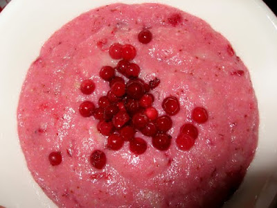 Kiehauta 2,5 dl vettä ja 2,5 dl kauramaitoa kattilassa. Kun neste kiehuu, lisää sekaan — samalla sekoittaen — 1,25 dl spelttimannasuurimoita ja sekoita puuroa pari minuuttia. Heitä sekaan puolukoita (minä laitoin noin 0,5 dl verran) ja hienonna homma sauvasekottimella tai vatkaimella. Makeuta lopuksi hunajalla. Minä en lisännyt puuroon suolaa, mutta Sun Spelt -purkin kyljen reseptissä sitä suositellaan lisättäväksi 1 tl.