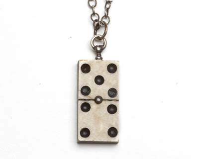 Korut ovat kuitenkin helpompi nettihankinta, jos nyt sattuisi vaikka haluamaan jotakin vaikkapa pienestä brooklyniläishopeapajasta nimeltä Digby & Iona. Löysin tieni nettisivuille alkuvuodesta ja käyn säännöllisesti kurkkimassa, mitä uutta pajassa on saatu aikaiseksi. Kaikki malliston korut eivät sydäntä lämmitä, mutta esimerkiksi tämä domino-koru on vaan ihan mahtava.
