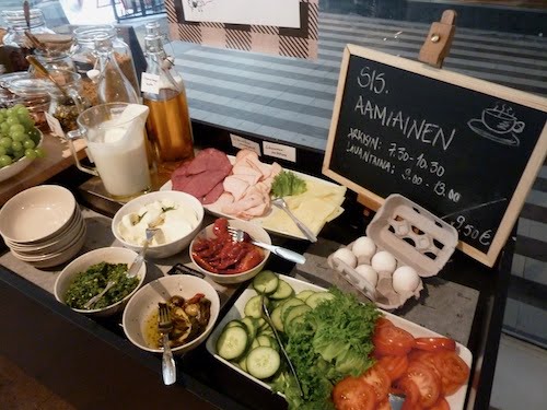 Jämähdin Katjan kanssa pitämään toimistoa aamiaisbuffetin äärelle. No onko se ihme, kun tarjoilut näyttää tältä?