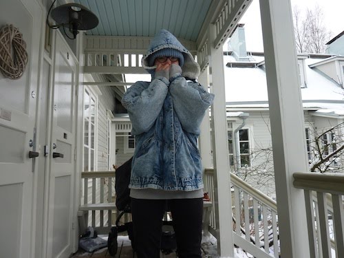 Takissa on kivoja yksityiskohtia, esimerkiksi: sopivan kulunutta denimiä, ajan patinoimina nappeja ja (järkyttävän) ihania saumoja. Ja huppu, se on talvitakissa ihan pakollinen. Kätsyä on, että Streetheron (mä NIIN rakastan tota nimeä!) hupun saa irti.