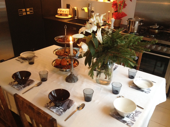 Pihaa koristelin lyhdyillä ja omenamehun pinnalle ripottelin jäisiä puolukoita. Jouluna on ihana viilata asioita vähän pidemmälle kuin arjessa. En minä näin pikkutarkka normaalisti ole. Kerran vuodessa saa onneksi hifistellä ihan luvan kanssa.