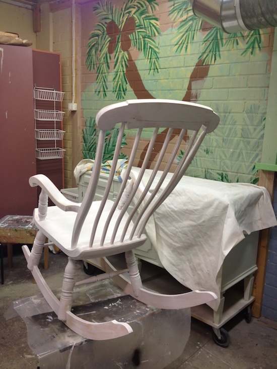 Pajalla myös korjataan vanhoja huonekaluja ja tehdään uusiakin. Jos tarvitset sohvapöytää tai vanha keinutuolisi kaipaa uutta maalia (niin kuin kuvassa), ei kun puhelu pajalle vaan. Tosin: työssä saattaa hieman kestää, mutta hinta on huokea.