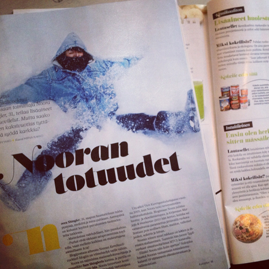 Ylemmässä kuvassa Kaksplussan alla vilahtaa muuten uusin Cosmopolitan, jonne puolukka-omenamyslini resepti päätyi. Kreisee medianäkyvyyttä tällä viikolla.