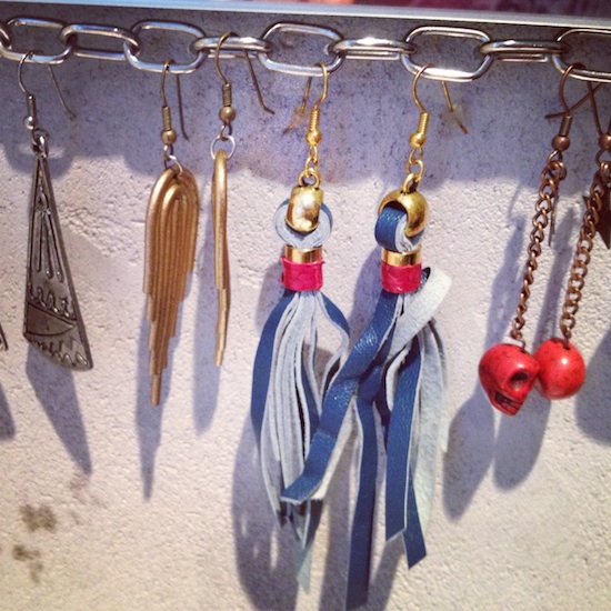 Kun olin lapsi, muistan kun äiti viritti kaksi vanhaa virkkuukoukkua vessan peilikaappiin, jotta sai korvakorunsa kätevästi järjestykseen. Äidilläni on yhä sama viritelmä paikoillaan. Olen ihan samanlainen korvishamstraaja kuin äitinikin ja käyttispareja on parikymmentä. Kauniit koruni ovat siellä täällä kadoksissa ja aina niitä saa hakea kiireessä ties mistä.