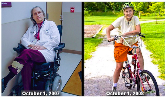 Lääkäri Wahls ennen ja jälkeen ruokavaliomuutoksensa. Länsimaisen lääketieteen aikaansaannoksilla ei ole osuutta paranemiseen.