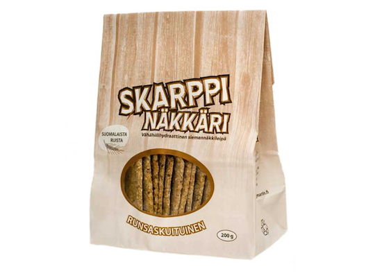 Syön aika harvoin leipää ja jos syön, on se aina ruipparia. Tämän hetken ykkössuosikki — Ullan Pakari —on jo saanut Kempparista jopa oman blogauksen, mutta tässä on toinen aika kiinnostava leivän asiaa ajava rouskuva: Skarppi näkkäri.