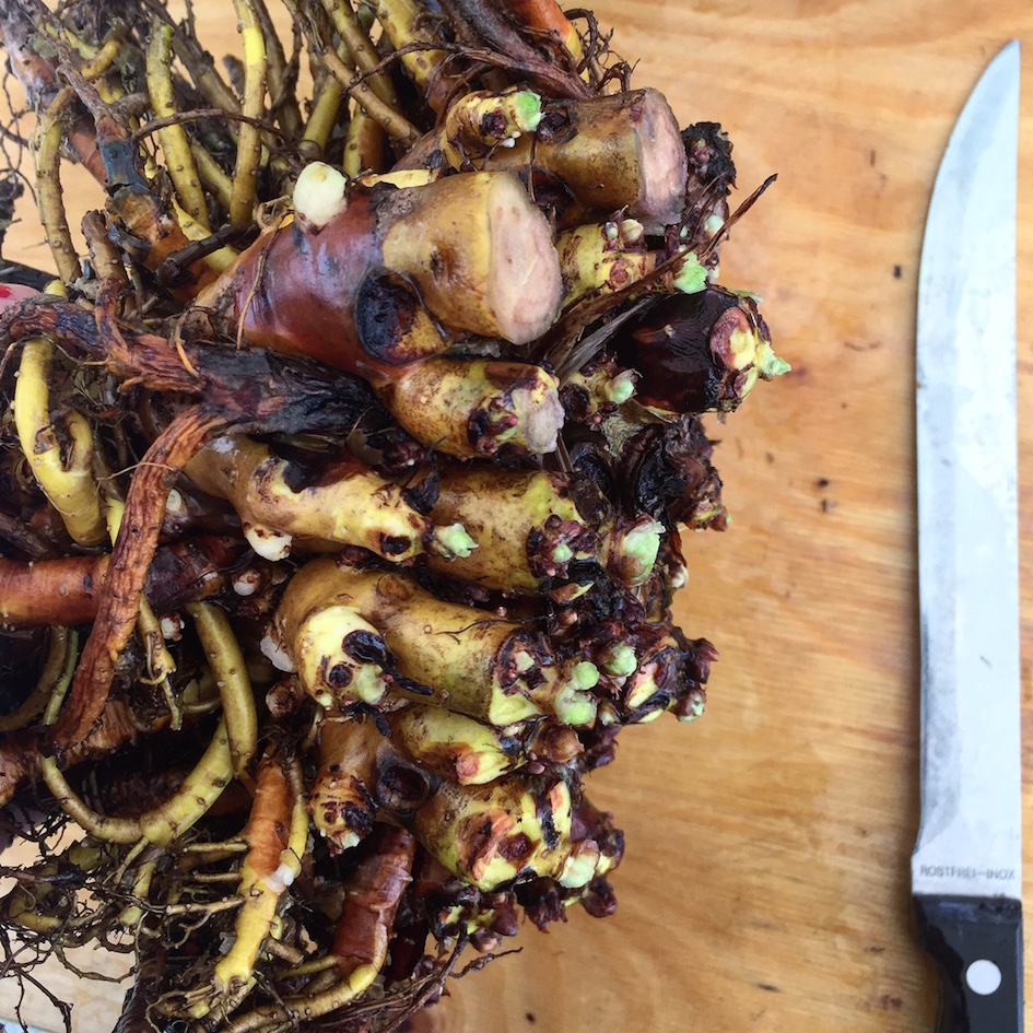 Opimme juuren tuotantoprosessin: ensin juuret kaivetaan esiin — valtaosa kasvista on maan alla ja nimenomaan juuri hyödynnetään. Tämän jälkeen juuri liotetaan ja pestään huolellisesti, siitä leikataan huonot/kuivat osat pois, jonka jälkeen juuri pilkotaan pienmpiin osiin ja taas pestään lisää.