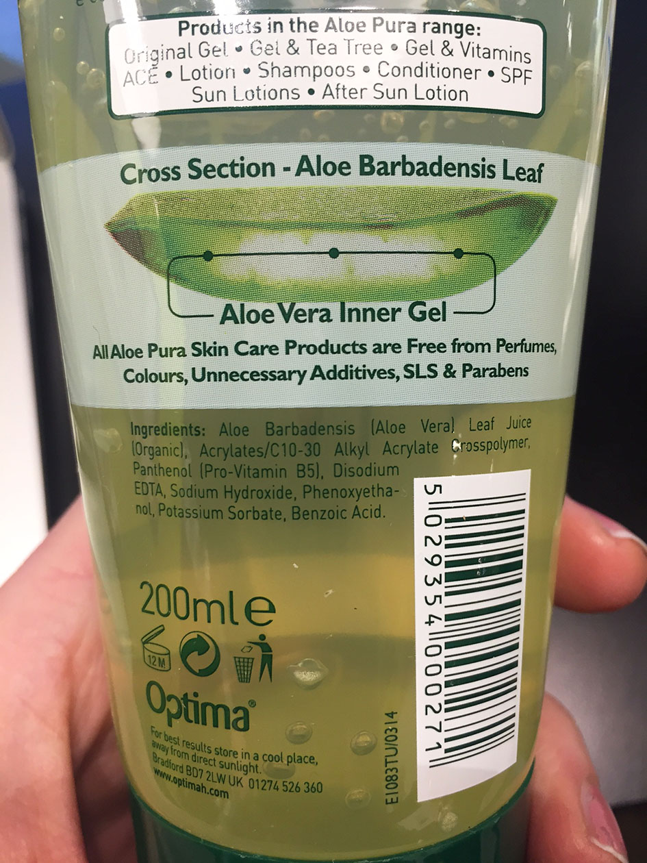 Kosmetiikan ostaminen ei piru vie ole helppoa sille, joka ei ole aiheeseen perehtynyt, mutta sen perusteella, mitä olemme Ekolossa ja Ruohonjuuressa tuotteita skannanneet, on 99% tuotteista todella ok. Kun ostaa kosmetiikkaa ekokaupoista, voi aika hyvin luottaa siihen, että sisäänostaja on jo syynännyt tuotteet puolestasi. Tällaisia tämän postauksen aloe vera -geelejä on tavanomaisten kauppojen hyllyissä varmasti vaikka kuinka, ekokaupoissa todennäköisesti vain muutamia hassuja yksilöitä, onneksi.