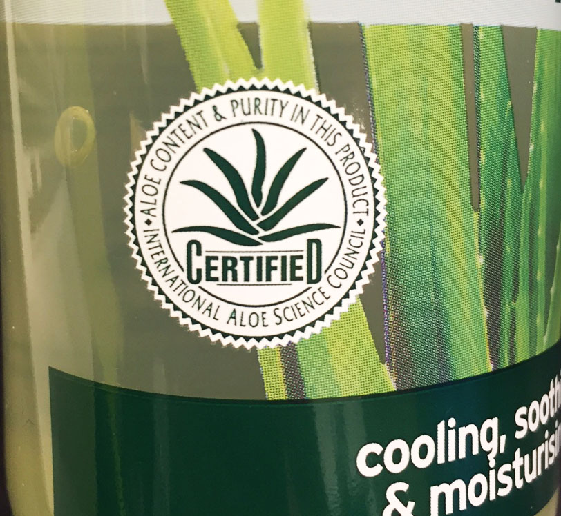 Sen verran täytyy korjata, että kyllä tuo sertifikaatti on ihan aito, kuten sen logokin. Se takaa IASC:n sertifikaatilla, että tuotteessa on käytetty puhdasta aloe veraa. Sertifikaatti ei kuitenkaan takaa mitään siitä, mitä muuta tuotteeseen on lisätty. Mutta aloe vera on puhdasta aloe veraa.