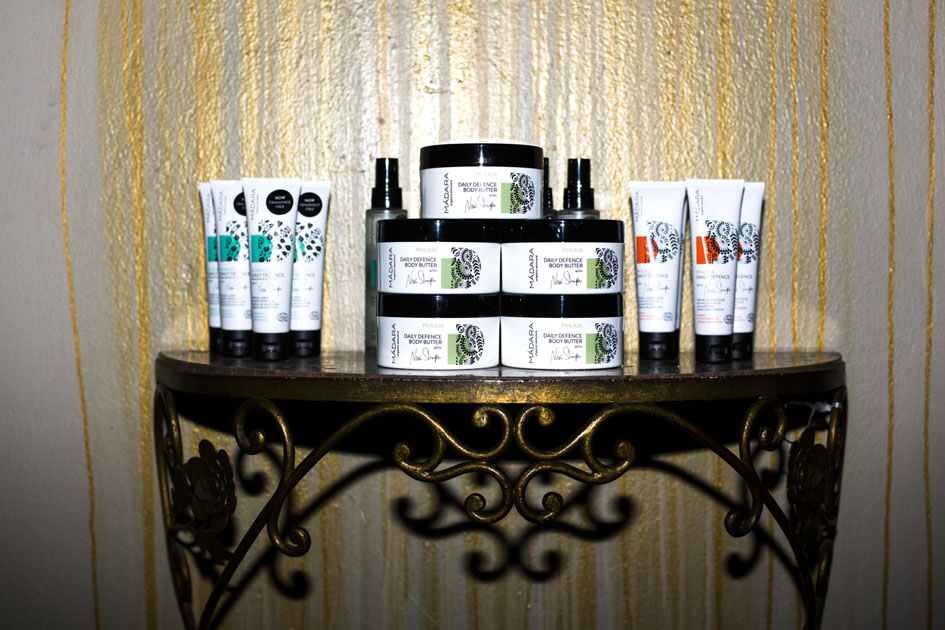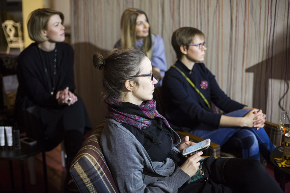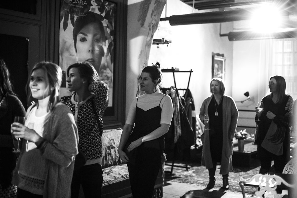 Onneksi Dorit ehti napata minusta ja Lottesta kaverikuvan, tilaisuuden kolmas pääjärjestäjä, The Natural Goods Companyn Minna Oey kun onnistui väistelemään kameraa koko illan! Ilman Minnaa ja firmaansa olisi Suomen luonnonkosmetiikkakenttä paljon suppeampi. Minna on muuten sellainen visionääri ja tekijänainen, että taidanpas tehdä naisesta haastattelun blogiin.