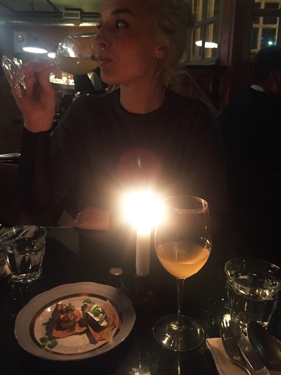 WINOn keittiö on kunnianhimoinen ja neljällä henkilökunnan jäsenellä onkin tausta Michelin-ravintoloissa. Sen näkee ja maistaa. Annokset ovat kauniita ja herkullisia, niissä on uutta ajattelua, muttei kuitenkaan mitään yltiöpäistä ylikikkailumeininkiä. Ihania perusmakuja, joita on osattu yhdistää yllätyksellisellä tavalla. Haastattelin keittiömestari Oona Bondestamia, joka kertoi, että periaatteena on käyttää kestävästi tuotettuja raaka-aineita, paljon luomua ja että esimerkiksi vegaanivaihtoehto löytyy listalta päivittäin. Nautimme Iisan kanssa jokaisesta annoksesta— ooh mitä herkkuja!