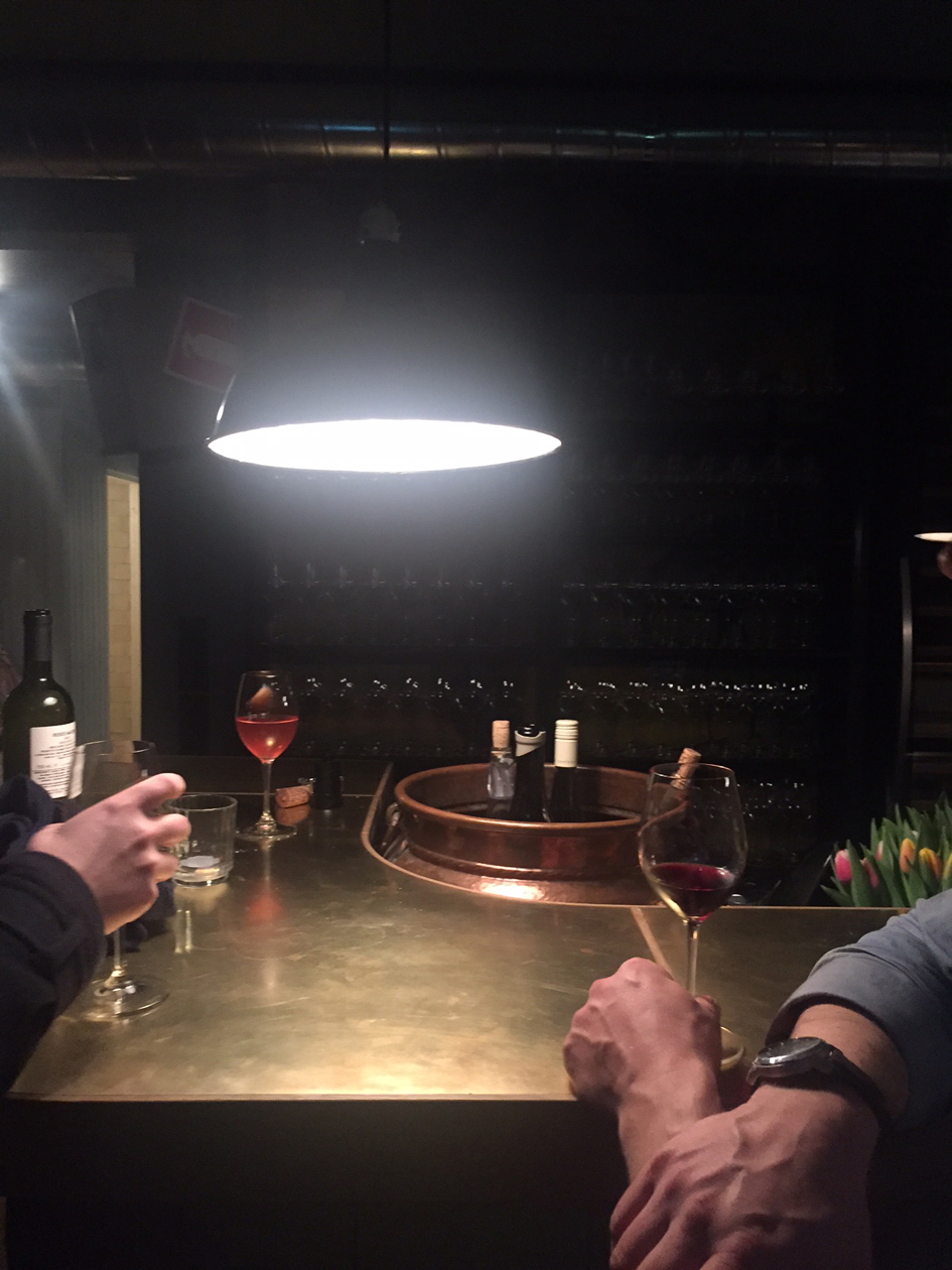 Paikan konsepti on kiva: mestaan voi mennä lasilliselle, parille tai syömään ja juomaan. Viinilista on hillitön ja kaikki listan tuotteet ovat luomuviinejä ja osa biodynaamisiakin. Viinit tulevat Euroopasta. ”Kauempaa en oikein näe järkeä rahdata viiniä, kun ”paikallisilla” pärjää ihan hyvin” Hemmo summaa. Baaritiski houkuttelee ihan vaan hengailemaan, tänne ei ole pakko varata pöytää ja asennoitua viettämään tuntikausia. Torstai-iltana moni piipahti impulsiivisesti sisään, joi lasillisen, ja jatkoi matkaa. Toiset olivat tulleet selkeästi syömään ja minä lähinnä vakoilin muita. Parasta.