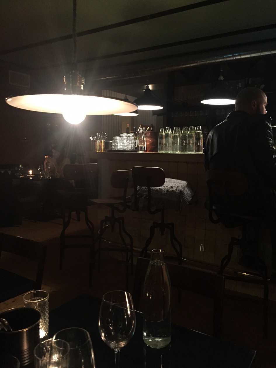 Pöytien valaisimet om kierrätetty Barcelonasta, vanhasta tekstiilitehtaasta ja eteisessä on hyödynnetty vanhan eiralaisen talon ikkunoita, jotka poistettiin ko rakennuksesta remontin yhteydessä. Mikä tärkeintä, on akustiikka hyvin miellyttävä. En kestä paikkoja, joissa pitää huutaa tullakseen kuulluksi. WINO on ihana, kotoisa pesäkolo, jossa voisi viihtyä koko illan (… ja kröhöm, avajaisiltana taisin olla paikassa noin 7 tuntia, heh).