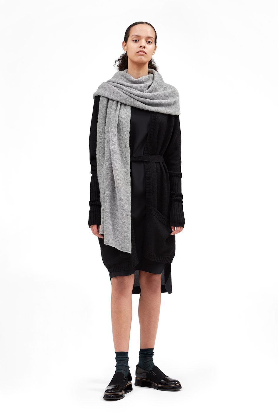 Margitia ovat aina kiehtoneet etenkin neuleet ja ne ovatkin olennainen osa Whitetailin mallistoa. Vaatteiden materiaaleina ovat alpakka, merinovilla, silkki ja silkkijersey; luonnolliset ja laadukkaat sekä ihanan tuntuiset materiaalit, joista valmistetuissa vaatteissa haluaa asua. Jokainen vaate, jota kokeilin, olisi voinut jäädä päälle heti! Täydellinen t-paita, pitkähihainen merinovilla-silkki -paita (joka sopii yhteen kaiken kanssa), mukavin neulemekko ikinä (kuva alapuolella), supermonikäyttöinen alpakka-neuletakki, joka ylettyy polviin saakka ja jättimäinen alpakkahuivi — Margit todellakin on kartalla siitä, minkälaisia vaatteita ihminen OIKEASTI haluaa käyttää ja tarvitsee.