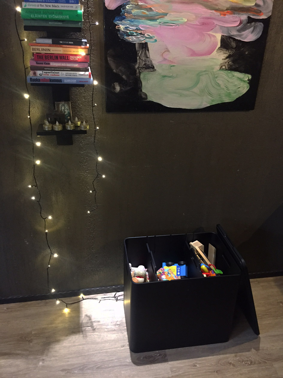 Parasta Ecosmolissa on se, että huonekalu kestää istumisen, seisomisen ja elämän ilman, että tarvitsee pelätä kolhuja. Ecosmol toimii hyvin vaikka eteisen istumatasona kenkiä jalkaan vetävälle tai sohvapöytänä ja tarjoilutasona. Lastenhuoneessa se kestää hyvin leikit ja päälle kipuavat pikkuiset ja isommat. Kalustetta voi mainiosti käyttää kierrätyksen sijasta ihan tavalliseen säilytykseen.