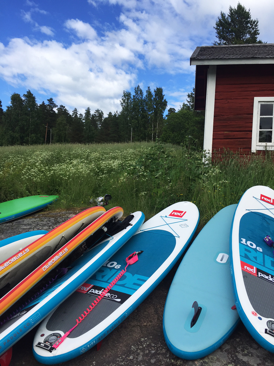 Itse omistan pumpattavan sup-laudan, jota voi kantaa sille suunnitellussa repussa. Viimeksi torstaina heitin repun selkään ja lompsin Töölönlahdelle. On aika huikeaa meloa keskellä kesäistä kaupunkia auringonlaskussa, kuulokkeet korvilla, nauttien auringon lämmöstä. En juuri keksi parempaa kesätekemistä.