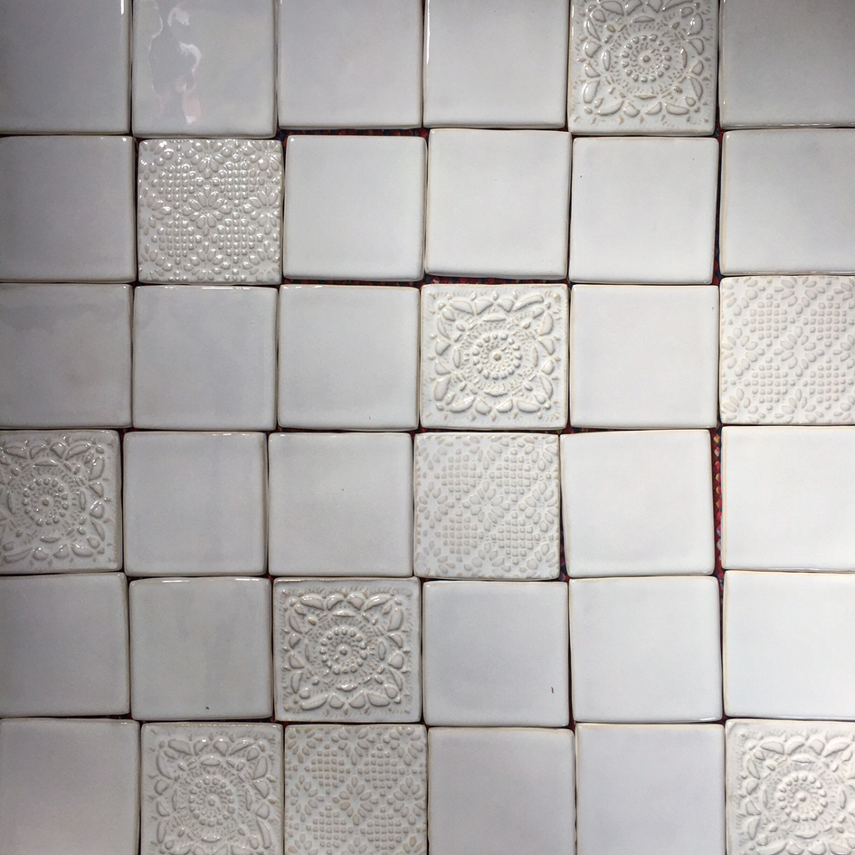 Kaakelien osalta tiesin heti löytäneeni hakemani, kun törmäsin Rakennusapteekissa Kaakelipajan kaakeleihin, jotka valmistetaan käsin Karjaalla. Panin oitis tilauksen sisään ja pian käsissäni olivat Catharina Borg-Wilénin valmistamat, kauneimmat kaakelit ikinä.