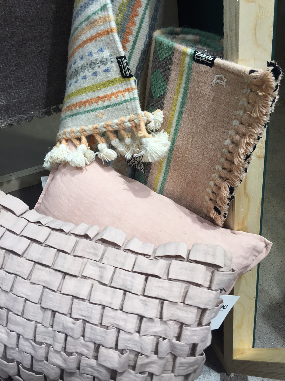 Silloin kun perheeseen syntyy lapsi, alkavat vanhemmat miettiä kodin materiaaleja ihan uudesta näkökulmasta. Millä matskuilla pikkuinen konttaa? Missä hän nukkuu? Onko ympärillä muovipintoja vai luonnonmateriaaleja? Mitä pikkuinen laittaa suuhunsa jne. Itselleni kodin tekstiilien osalta on tärkeää, että ne ovat myrkyttömiä (palonestoaineet ja vahvat väriaineet jne.). Samalla minua kuitenkin kiinnostaa se, että tuotteissa on  eettisyys ja design kohdallaan. Pieni putiikki Korkevuorenkadulla yhdistää designin, eettisyyden ja turvalliset materiaalit, suosittelen tsekkaamaan postaukseni Tikau-liikkeestä. Etenkin eettiset ja ekologiset matot ovat ihan älyttömän upeita: esimerkiksi kuvan matot on värjätty kokonaan kasviväreillä!