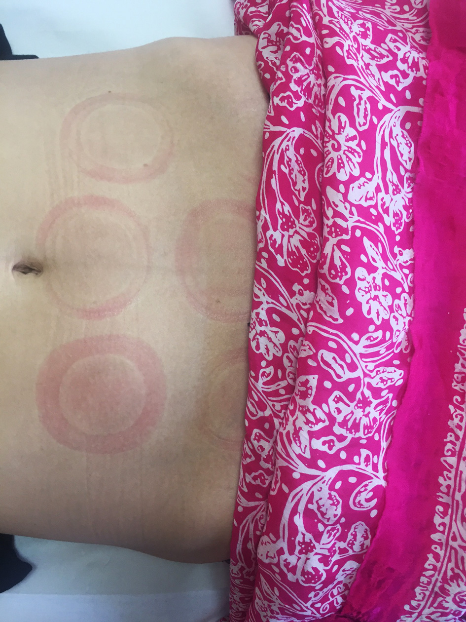 Syksyllä minulla oli liikaa kuumuutta kehossa ja kuukautiset jäi pois. Terapeuttini suositteli perinteistä kuppausta ja käynnin jälkeen kuukautiset alkoivat parin viikon sisällä.