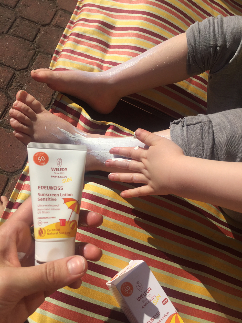 En rasvaa lasteni ihoa kosteutusmielessä kuin tarvittaessa, eli aika harvoin. Muutamia kertoja vuodessa ehkä. Aurinkovoiteet ovat kuitenkin oma lukunsa ja enemmän kuin tarpeen silloin, kun vietetään aikaa veden tuntumassa ja lapset ramppaavat ees taas pulikoimassa ja rantahietikolla. Tällaisia hetkiä oli viime kesänä todella vähän, eikä meillä juuri aurinkorasvaa kulunut, mutta aikaisempina kesinä olen rasvaillut lapsia kyllä kesällä melkein joka viikko enemmän tai vähemmän. On todella tärkeää valita fysikaalinen aurinkosuoja kemiallisen sijaan.