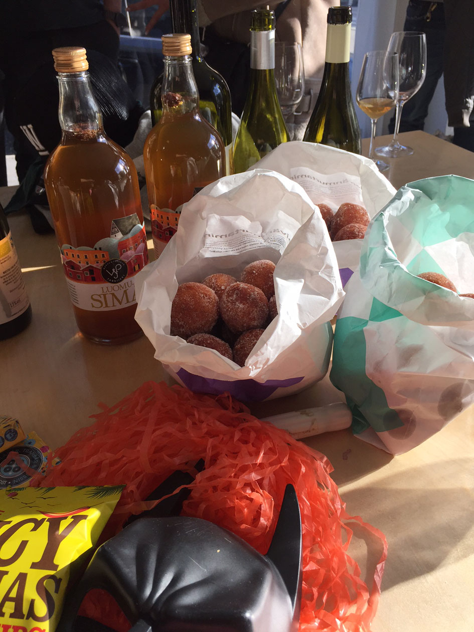 Rahkamunkkipalleroita napattiin mukaan 60, mutta 100 olisi tarvittu — vähintään. Munkkeja tultiin hakemaan bileistä jopa etukäteen varmistamalla, että ”onhan niitä vielä?!”. No ei ollut kauaa.