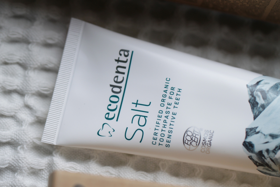 Testasin viittä erilaista Ecodenta-tahnaa, joista edellisten lisäksi luomulaatuinen Salt-suolatahna on suosikkini. Suolahammastahnoja olen testannut muiltakin merkeiltä, joten konsepti oli entuudestaan tuttu. Ecodentan luonnonsuolaa ja kaliumsitraattia sisältävä, fluoriton hammastahna on suunniteltu vihloville hampaille ja ikenille, kaliumsitraatti auttaa muodostamaan hampaisiin suojakerroksen, joka suojaa vihlomiselta. Syväkurkkuni totesi, että sellaisille, joilla on herkät limakalvot tai jos tulee helposti aftoja, voivat ekologiset tahnat olla tosi hyvä vaihtoehto, mutta että fluoria kannattaisi käyttää silti rinnalla myös.