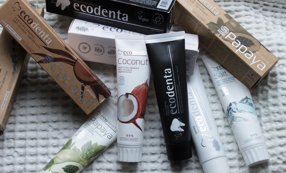 Kun pohdin, mitä ekohammastahnoja haluaisin testata, vinkkasi Laura heti Ecodentan. Sarjan Triple Effect Toothpaste on oma suosikkinsa ja ollut käytössään pitkään, pitäen ikenet kunnossa ja hampaat valkoisina. Kolmivaikutteinen tahna sisältää kiillettä vahvistavaa valkoista savea, ikeniä suojaavaa ja iensairauksia ehkäisevää propolista ja Teavigoa-TM -uutetta, joka on vihreästä teestä saatava, plakin muodostumista ja hammaskiveä ehkäisevä uute. Ecodenta on liettulainen brändi, jonka tuotteet on kehitetty yhteistyössä Liettuan yliopiston terveystieteiden laitoksen ja hammaslääkärien kanssa.