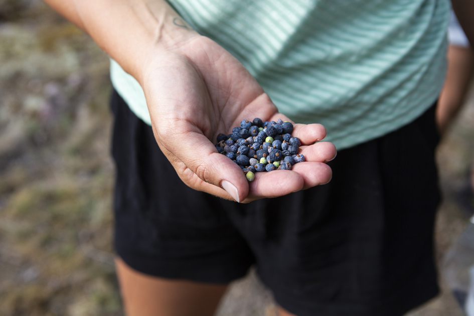 Myös annoksessa käytetyt katajanmarjat löivät mut aika ällikällä. Olen toki pitkään tiennyt, että niitä on käytetty kansanlääkinnässä ja että kyseessä on itse asiassa vaikutuksiltaan todella voimakas luonnon raaka-aine. Ennen vanhaan katajanmarjoja käytettiin ehkäisykeinona, ja odottajien pitäisikin jättää nämä marjat väliin tai syödä niitä tosi pieniä määriä. Tosin: ei näin voimakasta makua kerralla paljoa haluakaan suuhunsa, mutta mausteena katajanmarja on huikea! Miksen ole koskaan kerännyt sitä talteen ja käyttänyt ruokana? Saaressamme kasvaa katajaa vieläpä ihan älyttömiä määriä.