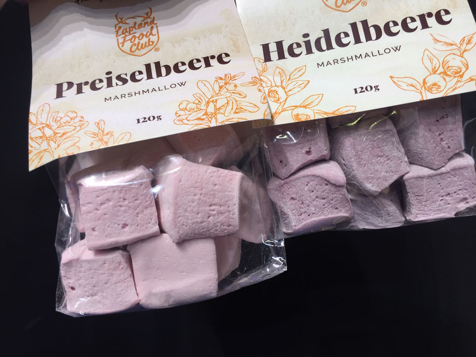 Mikä ihme sitten on Lapland Food Club? Neljän lappilaisen yrityksen yhteenliittymä, jonka myötä kansainvälisille areenoille on mahdollisuus ponnistaa ihan erilaisin voimin. IG:n puolella jo intoilinkin, kuinka nyt vihdoinkin on lähdetty siihen, mikä on suomalaisille, pienille toimijoille se fiksuin reitti: voimien yhdistäminen. Lapland Food Club on yhtä kuin Arctic Warriors, Arctic Superfoods, Lapin Marjat ja Wild From Arctic. Lopputuloksena on yhtenäisen ilmeen saanut tuoteperhe, jonka alla on suomalaisen metsän ja luonnon raaka-aineita herkullisessa muodossa. On kuusenkerkkäjauhetta ja tyrnimehua, mutta myös mustikkavaahtokarkkeja ja mustikka-suklaapatukoita.