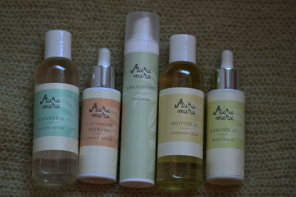 Sarjan nimi tulee brasilialaisesta murumuru-voista, jota saadaan kasvin siemenistä. Voi rauhoittaa, pehmentää ja kosteuttaa ihoa ja on sarjan pääkomponentteja. Tuotteissa on myös kotimaisia raaka-aineita, kuten seerumin kaurauute, mustaherukansiemenöljy ja nokkonen. (Löydät kaikki Murumuru-sarjan raaka-aineet täältä, jos haluat tarkastella niitä lähemmin.)