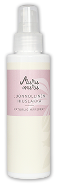 Murumuru-hoitoaine puolestaan tuoksuu vähän liikaa hammastahnalle, mutta tekee kyllä hiuksista tosi kiiltävät ja pehmeät. Lopputulos miellyttää, vaikka tuoksu onkin enempi jälkikasvun mieleen. Hiuksista puheenollen: se hiuslakka. Luonnonkosmetiikassa on muutama tuote, joiden osalta tuntuu, ettei mikään ikinä ole hyvä. Lakka on sellainen. Murumurun lakka tuntuu omaan päähäni vähän liian märältä, mutta toisaalta se pitää aika kivasti. Huomasin päivän päätteeksi kylläkin, että tummassa hiuksessa lakka näkyy vähän hilseen näköisenä, mutta blondimmalla ei ole tietenkään tätä ongelmaa.