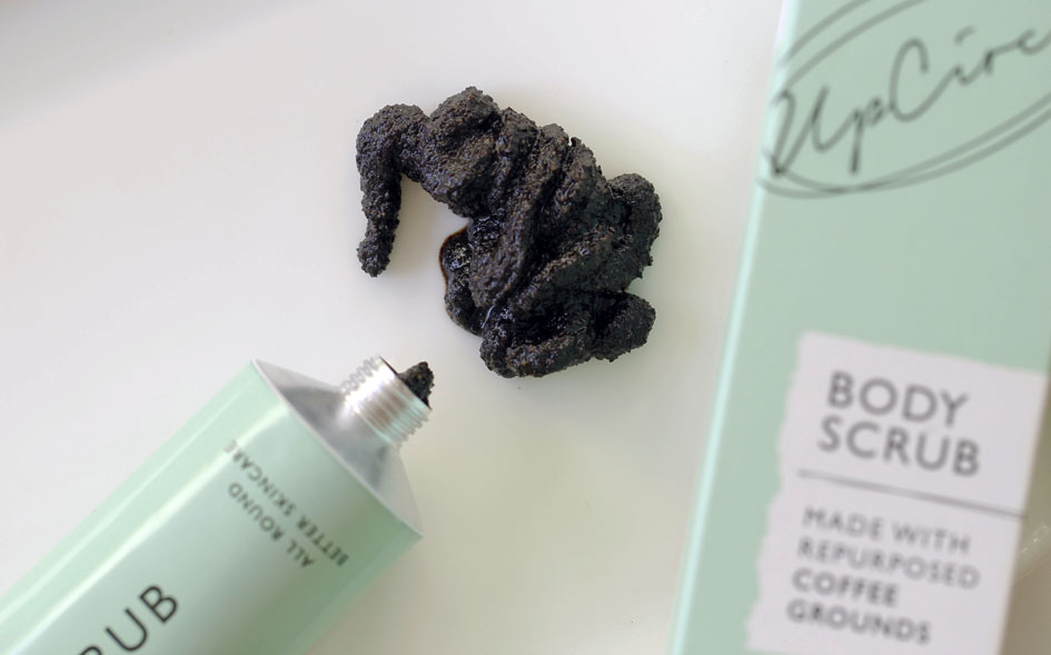UpCircle perustuu ruokahävikin edelleenkäytölle, brändin logo viittaa kiertotalouden ideaan. Haastattelin sarjan perustajaa, Anna Brightmania, joka kertoi, kuinka kaikki alkoi lontoolaisten kahviloiden kahvipurujen edelleenkäytöstä. Nykyään UpCircle kerää viikottain noin sadan lahvilan kahvinpurut ja muuttaa ne vartalo- ja kasvokuorinnoiksi, sekä kasvoseerumiksi.