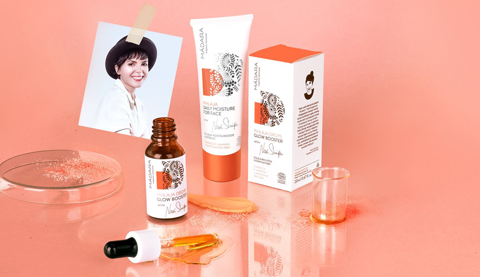 Itse olen käyttänyt talven ajan kasvojen iholla Pihlaja Glow Boosteria ja Pihlaja DD-voidetta. Nämä ovat myös Suomen myydyimmät Mádara by Noora -tuotteet.