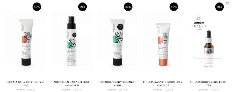 Tänään koko konkkaronkka on -40%, joten on hyvä aika testata, ellet vielä ole tutustunut Pihlaja tai Nokkossarjoihin!