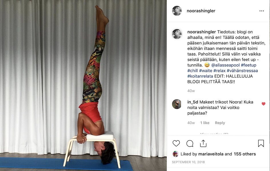 Olen kuluneen vuoden aikana testannut Altaalla myös jumppia: paikassa järjestetään monia erilaisia aktiviteetteja, joista Go Flo -tunnit ovat olleet mun suosikkeja. Tunnilla tehdään köysien kanssa (ja ilman) erilaisia sykettä nostavia harjoituksia sekä lihaskunto- ja venyttelyliikkeitä, joissa käytetään tehokkaalla tavalla vatsa- ja pakaralihaksia. Tunnit sujahtavat ohi nopeasti, kun meininki on vaan ihan törkeän hauskaa! Joustavissa köysissä lennetään kuin supermies, eikä treeniä tule edes ajatelleeksi. Suosittelen testaamaan! Myös jännittävää tuolijoogaa, Feet up -tuntia testasin. Olen harrastanut astangajoogaa monen vuoden ajan (tosin en nyt 3-4 vuoteen) ja tämä pallin avustuksella tehtävä jooga olisi mainio kokemus varmasti hänelle, joka ei vielä pysy helposti päälläseisonnassa ilman avustetta. Jännä kokemus!