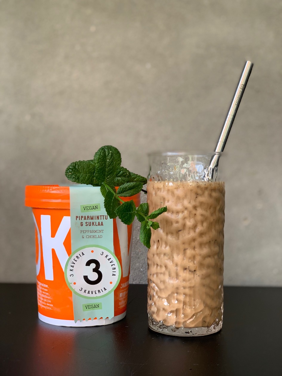 - 4 dl Kolmen kaverin piparminttu-suklaa -vegaanijäätelöä
