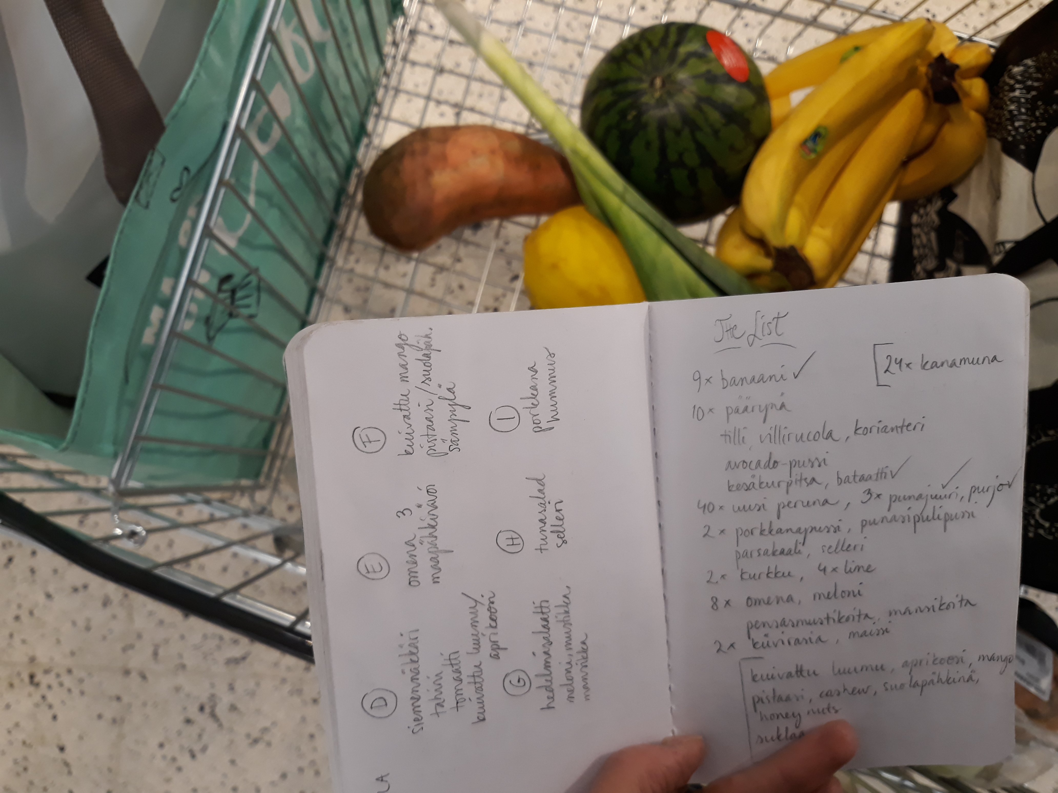 Olen sitä ihmislajia, joka rakastaa listojen tekemistä. Teen myös kotona ruokalistoja, yleensä luettuani jonkun inspiroivan ruokakirjan, ja pyrin ostamaan noin viikon ostokset yhdellä kauppareissulla. Lisähaastetta mökkiviikkoon tuo kuitenkin se, että mukaan pitää pakata suolasta ja vessapaperista lähtien kaikki, mitä tarvitsemme. Eikä ostoksia todellakaan voi täydentää yhtä helposti kuin kaupunkioloissa.