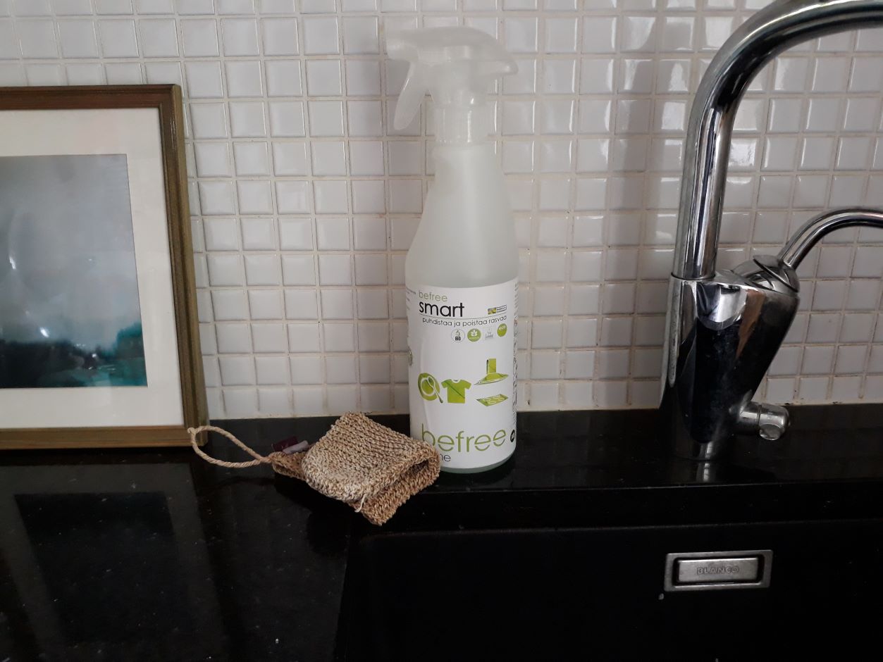 Sen verran koukuttavia Befree-tuotteet ovat, että ne hupenivat käytössäni nopeaa tahtia, kun innostuin testailemaan niitä kaikenlaisiin vuosien varrella pinttyneisiin likoihin. Tärkein ekoteko olisikin ennaltaehkäistä pinttynyttä likaa ja huolehtia säännöllisestä siivouksesta, jolloin pärjää myös vähemmän tujuilla aineilla tai jopa pelkällä vedellä. Silloin, kun pelkkä vesipesu ei riitä, Befree Smartin kaltainen arjen pelastaja on ihan hyvä olla kaapissa.