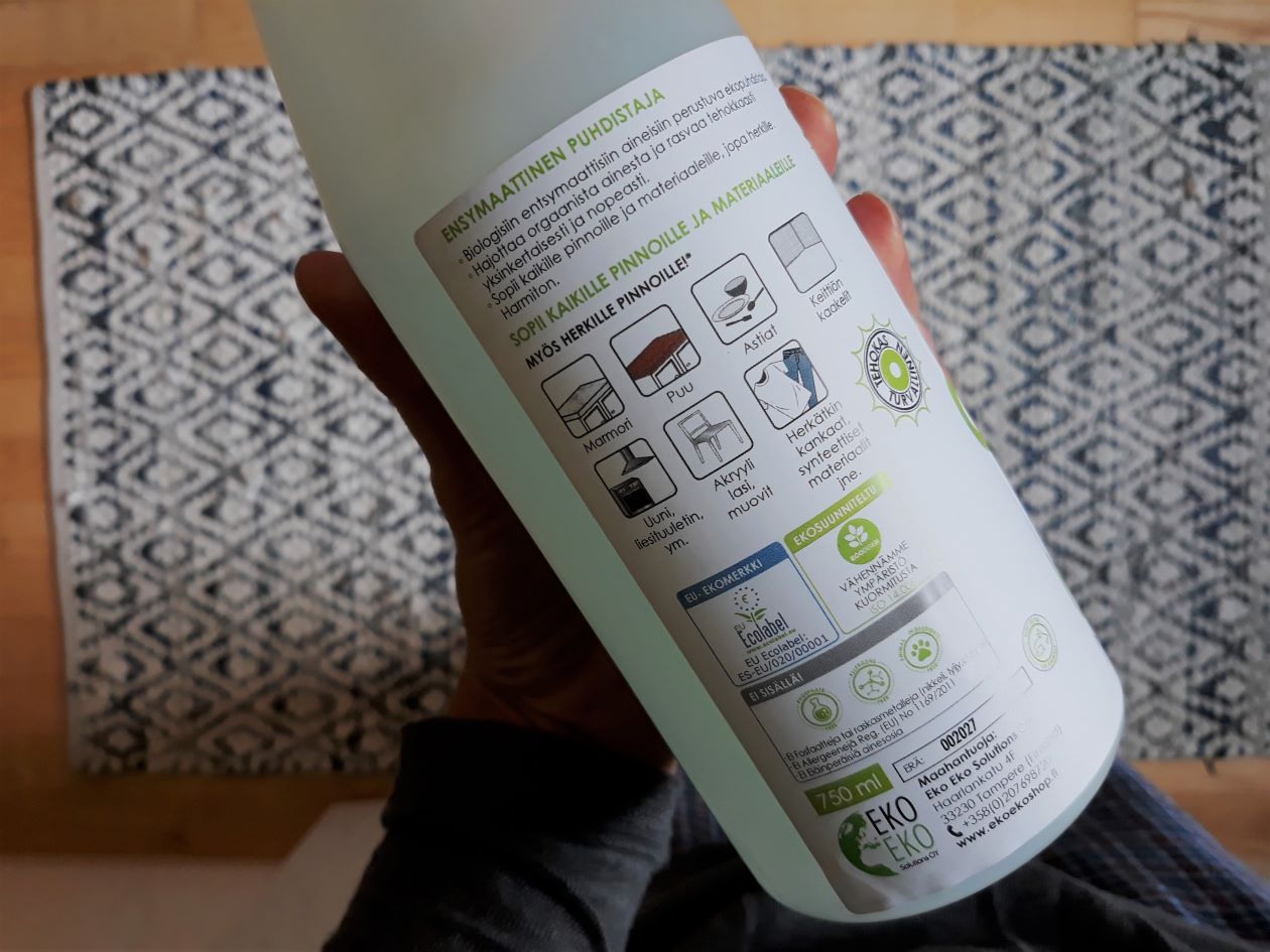 Vuosien varrella olen ekoinnostuksissani testaillut jos jonkinmoisia tee-se-itse -siivousaineita. Joskus (tai lapsiperheessä useinkin) tarvitaan kuitenkin jotain tujumpaa. Kuten esimerkiksi silloin, kun 2-vuotias on tallonut puolukan räsymattoon tai suutuspäissään piirtänyt vahaliidulla parkettilattiaan. On jotenkin nurinkurista, että lasten myötä moni haluaisi vähentää kodin kemikaalikuormaa minimiin – ja samaan aikaan juuri lasten takia tehokkaille pesuaineille on jatkuvasti tarvetta.