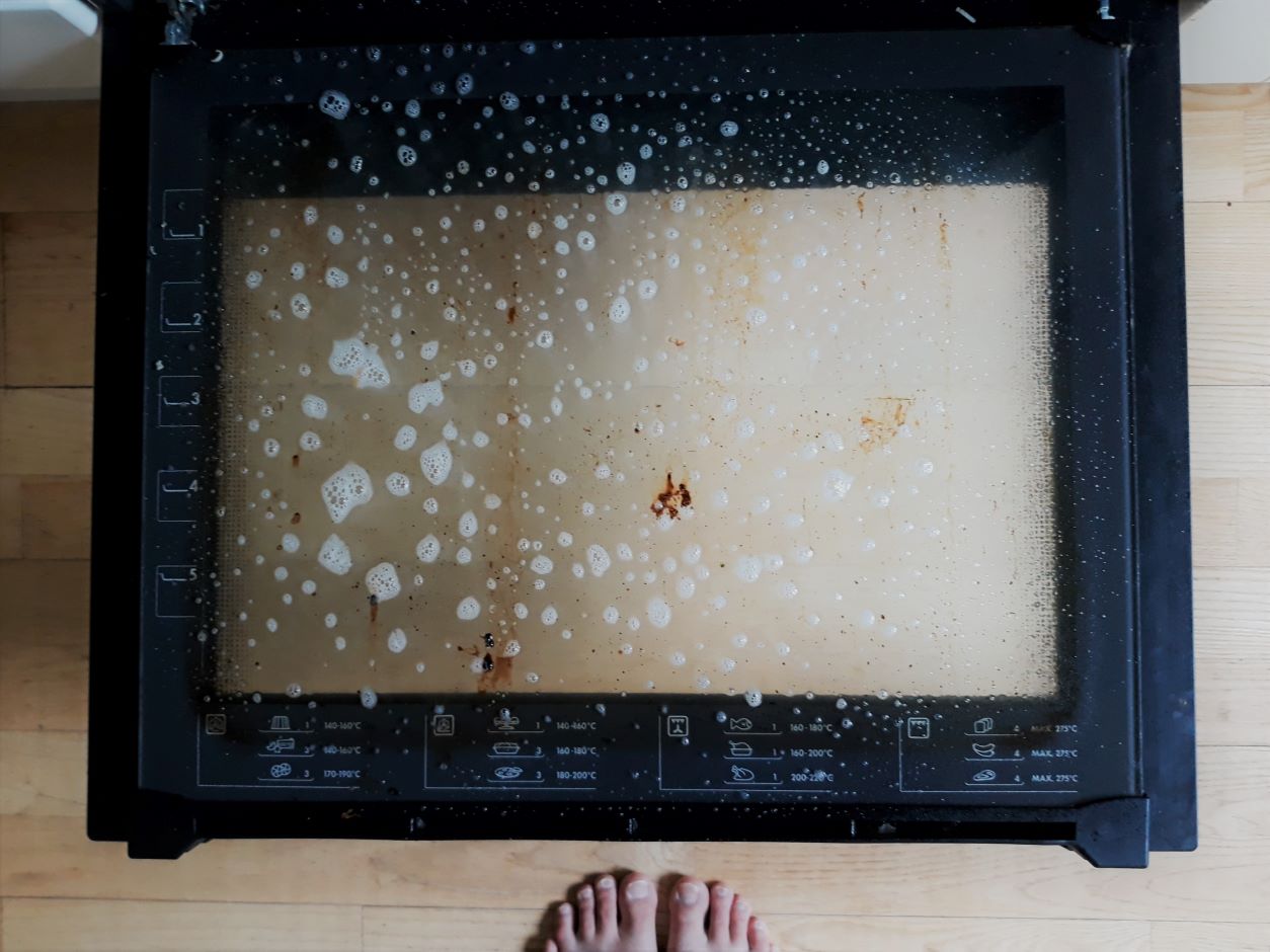 Tehossa ei kuitenkaan ole valittamista ja parin viikon testailujen aikana kävi ilmi, että tuote poistaa mm. pinttyneitä tahroja sohvasta ja kevyellä pyyhkäisyllä vahaliidut parketista – ja syöttötuolin pinttyneisiin moskiin tämä on aivan loistotuote! Testasinpa tätä jopa uunin puhdistukseen ja ilman hankausta en selvinnyt, mutta ihan hyvin toimi siihenkin. Tuotetta voi myös suihkuttaa vaatetahroille (tai niille räsymaton puolukoille) ennen pesukoneeseen laittoa tai astianpesukoneeseen tehostamaan astianpesuaineen vaikutusta. Täytyy todeta, että todella monikäyttöinen tuote!