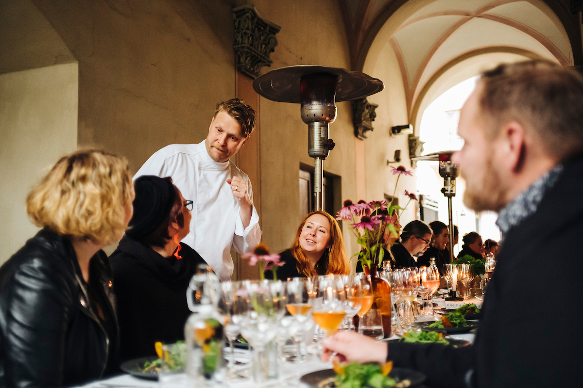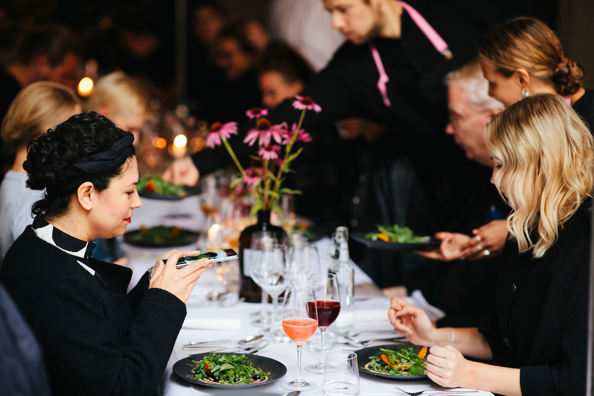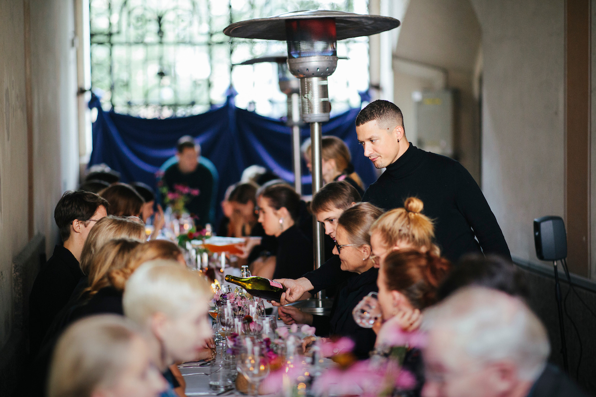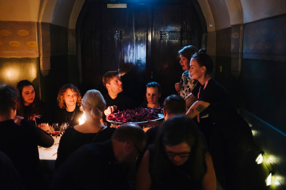 Frantsilan Anna on ihan samasta puusta: mikään ei ole mahdotonta — teoriassa ainakaan! Me kolme innostutaan ihan yhtä paljon ja sitten mun (ja Alman) nakki on hoitaa tuotannollinen säätö. Täytyy sanoa, että seuraavalla dinnerillä olisi kiva, jos meillä olisi oikea keittiö, juokseva vesi ja sähköä. Rakensimme nyt ravintolan vanhaan toimistotilaan, eli vuokrasimme koko keittiökaluston helloista pakastimiin ja juomakaapeista keittolevyihin. Sähköä vedettiin pitkiä matkoja ja ekassa kattauksessa tosiaan poksahti sulake ja hätiin tarvittiin pari ravintolaa lähikortteleista, jotta saatiin ruoat lämpimäksi. Onneksi kollegat jeesivät. (Kiitos ravintola Söder ja YesYesYes!) Kun sulakehommat saatiin haltuun, sujui loppuilta kevyen tuntuisesti.