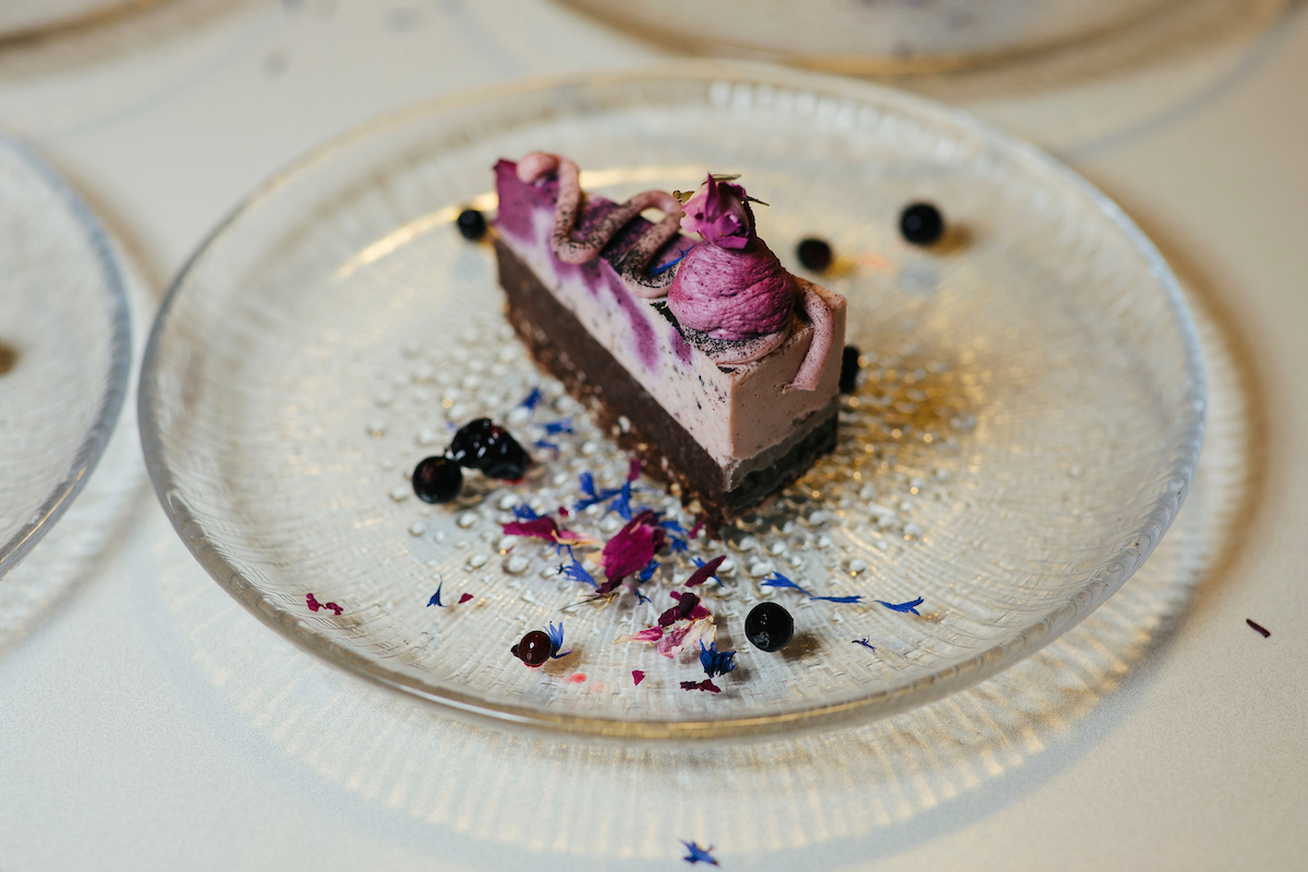 Marian jälkiruoka kruunasi dinnerin ja se oli monen mielestä parasta raakakakkua ikinä. Maria on koulutukseltaan kuvataiteilija ja sen kyllä huomaa; hän tekee ihan mieletöntä taidetta ruoasta. Voit kurkata kreisejä tekeleitään firmansa, Café Raawkan IG-tililtä. Olen muuten kuullut huhua, että Marian valmistamia raakakakkuja alkaa saada pian Helsingistä.. Palaan tähänkin heti, kun asia on ajankohtaien.